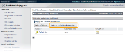 Kattintson a [Kulcs és tanúsítvány bejegyzés] vagy [CA tanúsítvány bejegyzés] lehetőségre.