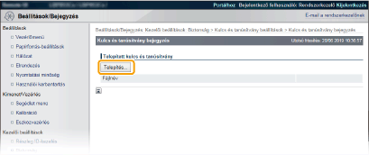 Kattintson a [Beállítások/Bejegyzés] gombra.