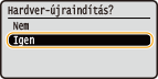Újraindítás és gyári visszaállítás előtt mindenképpen győződjön meg arról, hogy más felhasználók nem használják a készüléket, mert ezek a műveletek kitörölnek valamennyi nyomtatásra váró nyomtatási adatot. |
