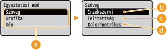 Válassza ki azt a képadattípust, amelynek beállításait módosítani szeretné. Válassza a <Szöveg> lehetőséget karakterek, a <Grafika> beállítást vonalak és ábrák, illetve a <Kép> pontot képek (pl. fényképek) nyomtatásához.
