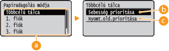 <Sebesség prioritása> vagy <Nyomt.old.prioritása>