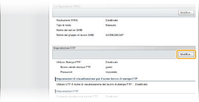 Fare clic su [Modifica] in [Impostazioni FTP].