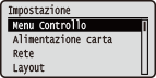 ) per visualizzare la schermata del menu corrispondente. Come esempio, qui sotto viene mostrata la schermata che appare quando si preme