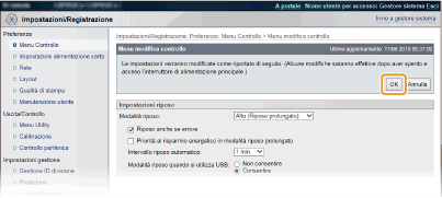 Se si specifica un intervallo di spegnimento automatico inferiore all'impostazione predefinita (4 ore) si potrebbe ridurre la durata delle cartucce di toner. |