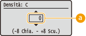 2 | Usare / per regolare la densità.![]() Regolazione densitàImpostare un valore "+" per aumentare la densità. Impostare un valore "-" per diminuire la densità. |