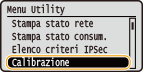 Quando si verifica un'errata corrispondenza dei colori o quando le immagini vengono stampate con colori diversi da quelli nell'originale, la calibrazione consente di correggere il problema. L'elaborazione per questa correzione richiede una quantità sufficiente di toner, quindi si consiglia di controllare in anticipo la quantità di toner rimanente e se necessario sostituire la/le cartuccia/cartucce di toner.