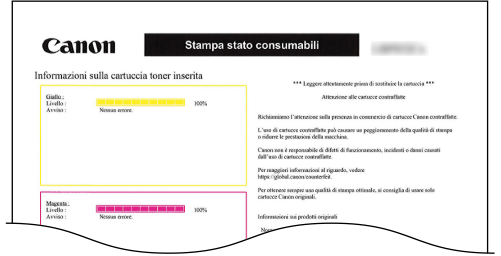 Stampa dello stato dei consumabili