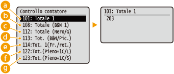 È possibile controllare il numero totale di pagine finora stampate e il numero attuale di pagine stampate in bianco e nero e a colori.