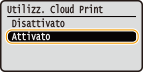 Selezionare <Utilizz. Cloud Print>, quindi premere
