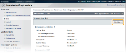 Configurazione DNS IPv41 | Fare clic su [Modifica] in [Impostazioni IPv4]. ![]() |