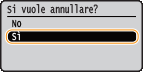 Viene visualizzato il messaggio <Annullamento lavori in corso> e il lavoro di stampa selezionato viene annullato.