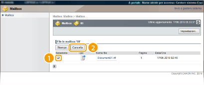 Selezionare la casella di controllo del documento da eliminare, quindi fare clic su [Cancella].