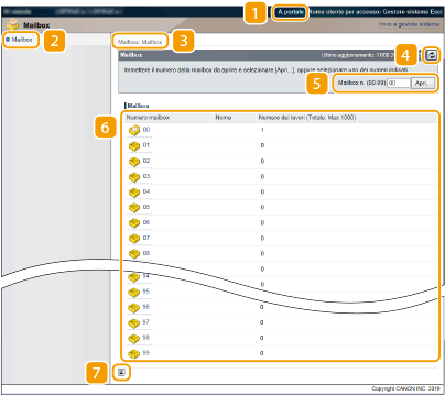 Visualizza la pagina [Mailbox]. È possibile stampare ed eliminare i documenti memorizzati nella macchina.