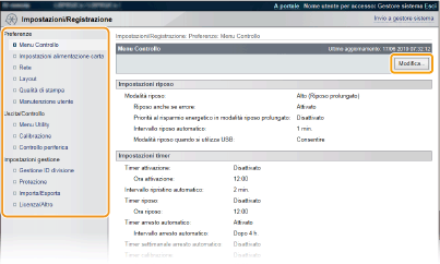 Licenza/Altro | È possibile modificare i messaggi mostrati nell'area dei messaggi e il collegamento alla pagina dell'assistenza che vengono visualizzati nella Pagina portale (pagina principale). È possibile registrare o aggiornare il software (Guida funzioni per Registrazione Software e Aggiornamenti). ![]() In alcuni paesi o regioni potrebbe non essere possibile utilizzare questa funzione. |