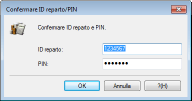 Accesso alla macchinaQuando si cerca di stampare da un computer con Gestione ID reparto abilitato, viene visualizzata la seguente schermata a comparsa (a meno che la casella di controllo [Confermare ID reparto/PIN durante la stampa] non sia deselezionata): | | |