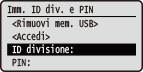 Registrare un ID reparto e impostare un PIN corrispondente. Registrare tutti gli ID reparto da gestire.