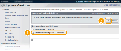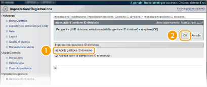 Selezionare la casella di controllo [Abilita gestione ID divisione] e fare clic su [OK].