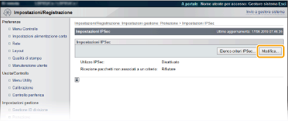 Quando si utilizza IPSec nella macchina, selezionare la casella di controllo. Quando non si utilizza, deselezionare la casella di controllo.