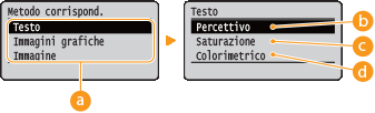 Selezionare il tipo di dati immagine per il quale si vogliono modificare le impostazioni. Selezionare <Testo> per i caratteri, <Immagini grafiche> per le linee e le figure, oppure <Immagine> per le immagini quali le fotografie.