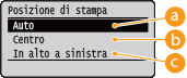 Se i dati TIFF contengono le informazioni che specificano la posizione di stampa, l'immagine viene stampata conformemente a tali informazioni; altrimenti, viene stampata al centro della carta. I dati JPEG vengono sempre stampati al centro della carta.