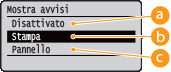 Asterischi (*)Le impostazioni contrassegnate da un asterisco (*) potrebbero non essere visualizzate in base alle opzioni in uso o ad altre impostazioni. |
