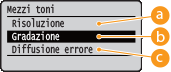 È possibile selezionare il metodo di stampa per riprodurre i mezzitoni (la gamma intermedia tra le aree più chiare e più scure di un'immagine) per ottenere la qualità ottimale del'immagine.