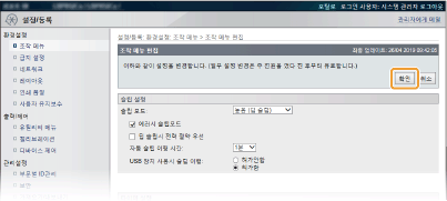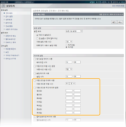 확인란을 선택하여 [자동 셧다운 이행 시간]에 지정된 시간이 경과하면 전원이 꺼지도록 합니다.