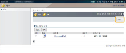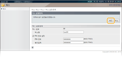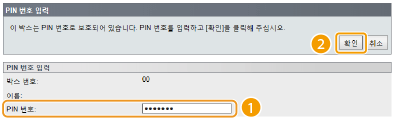 상자의 이름을 설정하거나, 상자를 여는 PIN을 설정할 수 있습니다. 상자에 쉬운 이름을 설정해두면, 프린터 드라이버를 사용하여 문서를 저장할 위치를 선택할 때 상자를 쉽게 구분할 수 있습니다. PIN을 설정하면, 제한된 사용자에 한해서만 저장된 문서를 액세스할 수 있어, 보안이 향상됩니다.