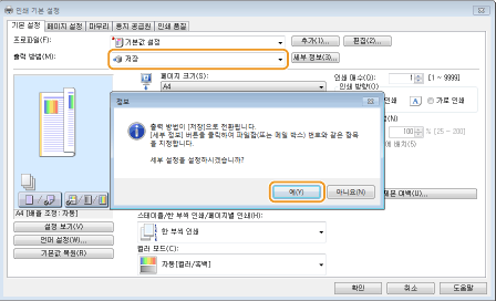 [저장]을 [출력 방법]에서 선택하고 [예]를 클릭합니다.
