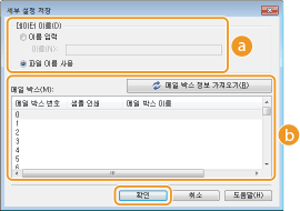 [메일 박스]SD 카드에서 인쇄 데이터를 저장하는 공간을 상자라고 합니다. 문서를 저장할 상자의 개수를 선택하십시오. 상자를 쉽게 구분하도록 상자에 이름을 지정할 수 있습니다.