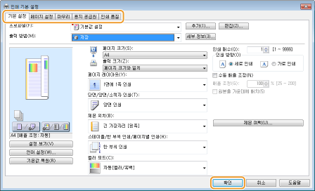 필요에 따라 인쇄 설정을 지정하고 [확인]을 클릭합니다.