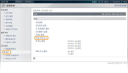 사용자의 사생활을 보호하기 위해, 리모트 UI 화면의 인쇄 내역 표시 및 인쇄 내역 목록 인쇄가 비활성화되도록 설정을 지정할 수 있습니다. 인쇄 작업 내역은 숨김 상태에서도 자동으로 업데이트 및 유지되어, 관리자가 필요 시 열람할 수 있습니다.
