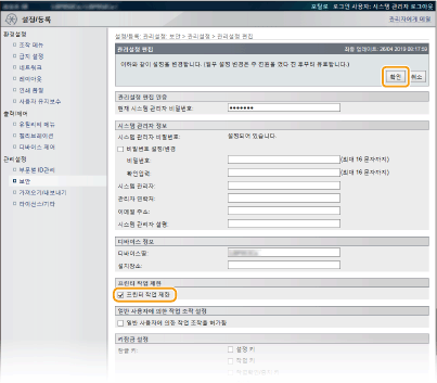 인쇄 작업이 제한된 상태에서도, 설정 목록과 리포트는 인쇄할 수 있습니다. 리포트 및 목록 인쇄 |