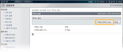조작 패널의 설정 메뉴에서도 IPSec 통신을 활성화 또는 비활성화 할 수 있습니다. IPSec