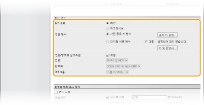 기기에서 IPSec를 사용하는 경우 확인란을 선택합니다. 사용하지 않는 경우에는 확인란 선택을 해제합니다.