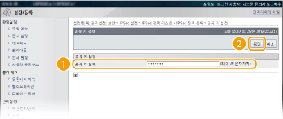사전 공유 키를 영숫자로 입력하고 [확인]을 클릭합니다.