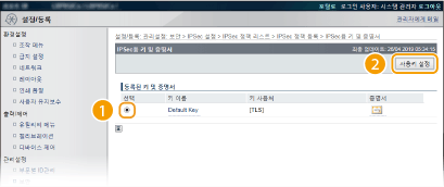 사용하려는 키 쌍을 선택하고 [사용키 설정]을 클릭합니다.