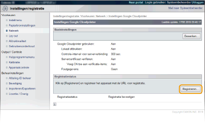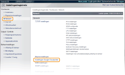 Schakel de functie Google Cloud Print functie van het apparaat in. U kunt de functie Google Cloud Print van het apparaat ook uitschakelen.