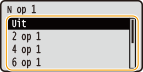 Selecteer of u meerdere pagina's op één vel wilt afdrukken door ze vanaf linksboven na elkaar te plaatsen. Bijvoorbeeld: om vier pagina's op één vel af te drukken, selecteert u <4 op 1>. Selecteer de instelling met