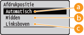 Geef de positie voor het afdrukken van een afbeelding op. Selecteer de afdrukpositie met