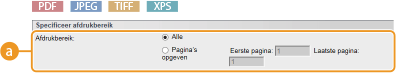 [Pagina's opgeven] | Selecteer om het afdrukbereik op te geven. Deze instelling is niet beschikbaar voor JPEG bestanden. |
