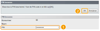 Als u een pincode wilt instellen, schakelt u het selectievakje [PIN instellen] in en typt u een pincode in het tekstvak [PIN]. Ter bevestiging typt u hetzelfde getal in het tekstvak [Bevestigen].