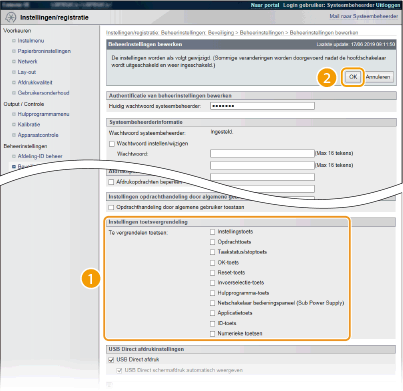 U kunt het gebruik van de sleutelparen op het bedieningspaneel beperken om te verhinderen dat de apparaatinstellingen abusievelijk worden veranderd.