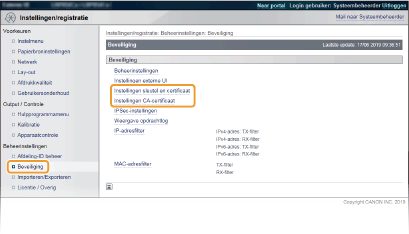 [Instellingen sleutel en certificaat] of [Instellingen CA-certificaat].