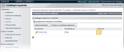 Klik op [Instellingen sleutel en certificaat] voor het verifiëren van een sleutelpaar, of [Instellingen CA-certificaat] voor het verifiëren van een CA-certificaat.