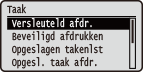 ![]() | U kunt documenten afdrukken die zijn opgeslagen op de SD-card en een afdruklogboek. Als u op het bedieningspaneel ( ) indrukt, verschijnt het Taakmenu. U kunt de hieronder beschreven instellingen opgeven als het apparaat offline is. |