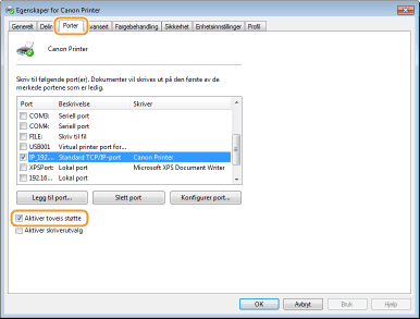 I kategorien [Porter], kan du kontrollere at det er krysset av i avmerkingsboksen [Aktiver toveis støtte].