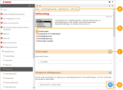 Klikk for å stille inn parametrene til å bestemme hvordan Bruksanvisning vises, som tegnstørrelse eller layout.