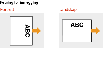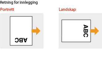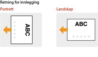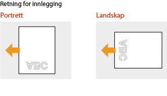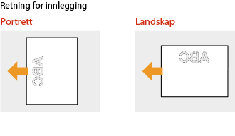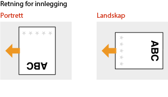 Når du bruker papir som er forhåndstrykt med en logo, må du ta hensyn til papirretningen når du legger det inn. Legg inn papiret på riktig måte, slik at utskriften utføres på riktig side av papiret med en logo.