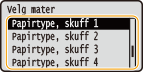 Velg én av <Papirtype, skuff 1> til <Papirtype, skuff 5>, og trykk på